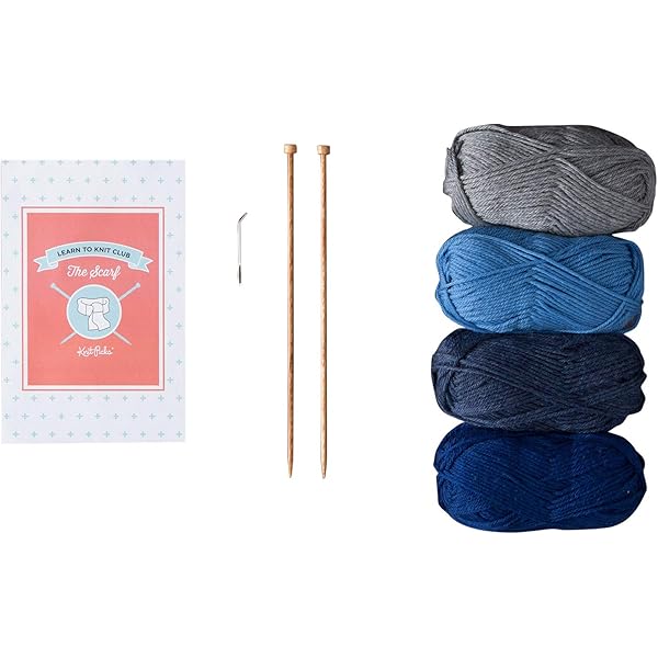 Amazon Com Knit Picks Learn To Knit Club The Scarf Beginner Knitting Kit Blue